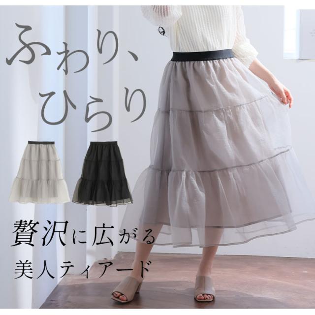 ひらり贅沢な佇まい。オーガンジーティアードスカート