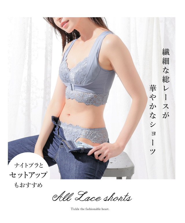アンダーウェア 下着 ショーツ パンツ 花柄レース セットアップ リボン ナイトブラシリーズ レディース Honeys ハニーズ 総レースショーツ