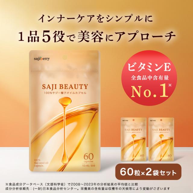 サジーサプリ SAJI BEAUTY サジー種子オイルカプセル 60粒 2袋セット ビタミンE オメガ 美容サプリ うるおい 紫外線 対策