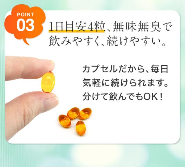 1日4粒を目安に水またはぬるま湯などでお召し上がりください。