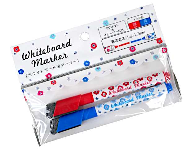 ホワイトボード用マーカー 細字 赤/青 マグネット&イレーザー付 2本入 (100円ショップ 100円均一 100均一 100均)