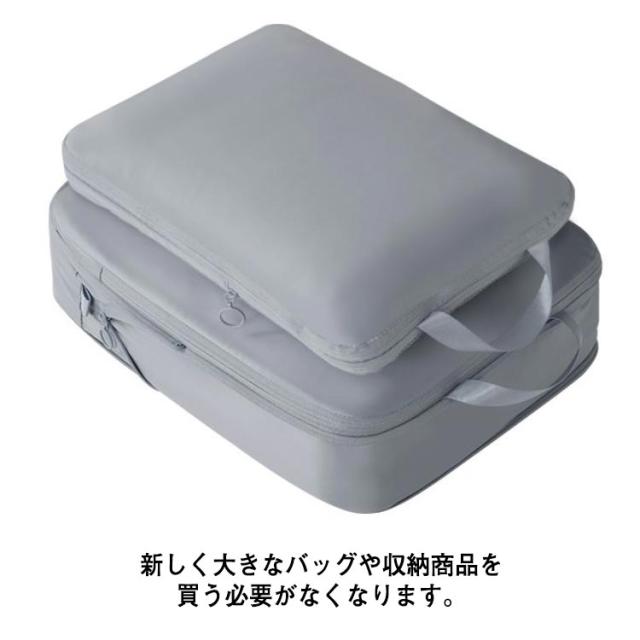 | ・簡単圧縮 ファスナーを閉めるだけで簡単に圧縮できます。 掃除機で吸ったり、手巻きして空気を抜いたりなどの面倒な作業は必要ありません。 ・予想以上の収納力 圧縮バッグに入れ、ファスナーを閉めるだけで、約50%、半分スペースを節約することができます。 今までパンパンだったキャリーバッグも大きなスペースが生まれます。 新しく大きなバッグや収納商品を買う必要がなくなります。 ・2箇所の収納スペース 清潔な衣類を入れることが出来ます。衛生面にとても優れています。 簡単で機能抜群な圧縮バッグですので、いろんな場面で使用できます。 旅行や海水浴、出張や温泉旅行に大活躍です。 | |