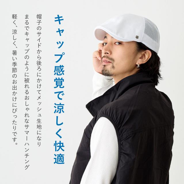 メッシュ ハンチング帽 メンズ 64cmまで対応 L XL 軽くて涼しい 蒸れない 暑い夏に快適 帽子 大きいサイズ 深め hun-680 MQUM キャップ風 サーモ ハンチング 紳士 ゴルフ BIG 通気性 熱中症 暑さ対策 30代 40代 50代 60代 お洒落 通気性 父の日 プレゼント 贈り物