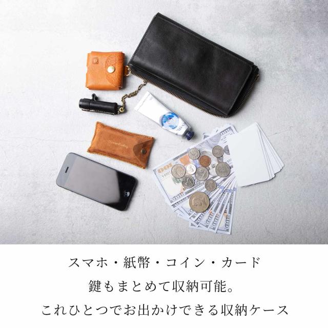 スマホ、紙幣、コイン、カード、鍵もまとめて収納可能。これひとつでお出かけできる大容量ケース。