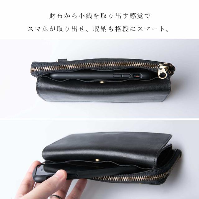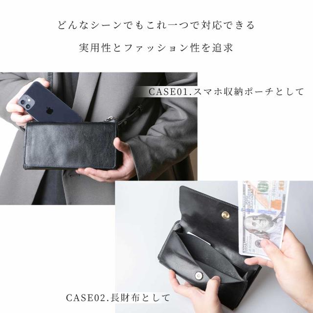 スマートフォン、財布、鍵、外出時に必ず必要なものをひとまとめにして持ち歩ける。決して簡易的なチープなモノでは無く、大人が自信を持って使える高級感、そして機能性を兼ね備えたケース。