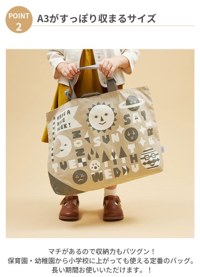 ・A3がすっぽり収まるサイズのレッスントートは保育園・幼稚園から小学校に上がっても使える定番のバッグ。長い期間お使いいただけます。