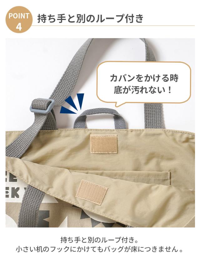・持ち手と別のループ付き。小さい机のフックにかけてもバッグが床につきません 。