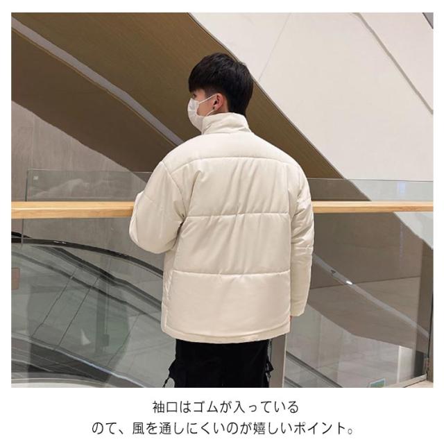 | 中綿入りの裏地は柔らかく、肌触りの良い生地を使用しました。 ハイネックのデザイン良い首元の防寒性をもたらします。 袖口はゴムが入っているのて、風を通しにくいのが嬉しいポイント。 控えめな配色で、アイコンの装飾がなく、大人の魅力を反映しています。 カジュアルといった幅広いスタイルに合わせる事のできるオススメの一着。 | |