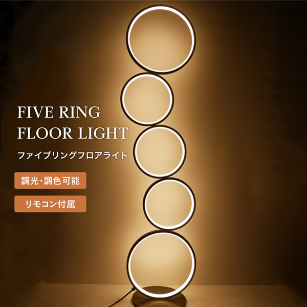 在庫限り フロアライト スタンドライト リモコン 付き ファイブ リング 間接照明 調光 調色 LED ライト 7Life 星岡商事 ブラック DH-L1007-BK
