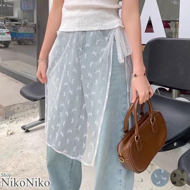 全品送料無料一部地域除く リボン柄レース レイヤードラップスカート ma 【即納】 巻きスカート 腰巻スカート シアー シースルー 韓国カジュアル フレンチガーリー ガーリー レイヤードスカート レディース 韓国 Y2Kファッション 韓国ストリート 流行り トレンド かわいい