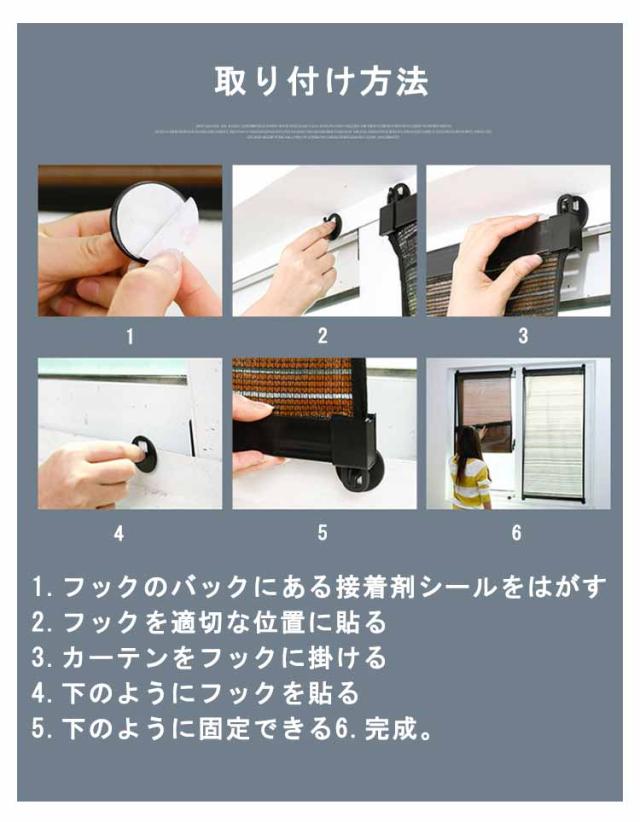 | 日焼け対策・丈夫で安定しており。カーテン。中空のデザイン、新鮮で通気性!4個フック付き! 窓の遮光にも使えますし、カーテン、暖簾としても使えます。様々なシーンに対応可能! 取り付け方法:1.フックのバックにある接着剤シールをはがす2.フックを適切な位置に貼る3.カーテンをフックに掛ける4.下のようにフックを貼る5.下のように固定できる6.完成。 | |
