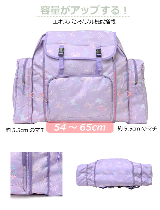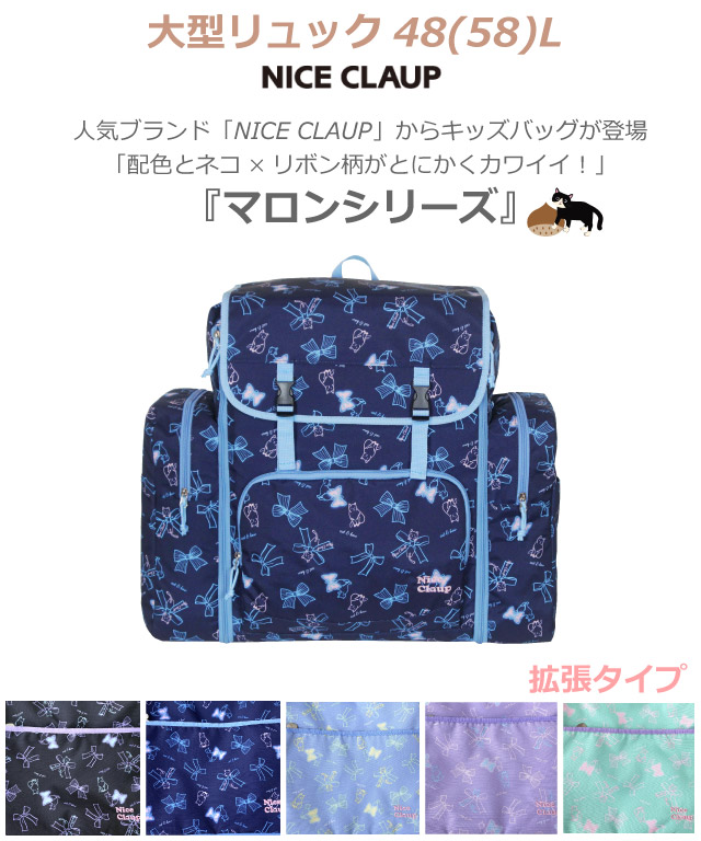 林間学校 リュック おすすめ NICE CLAUP ナイスクラップ マロン サブリュック 最大58L nc391 大型リュック 修学旅行 小学校 高学年 女子 林間学校リュック 小学生 女の子 かわいい おしゃれ リュックサック 大容量 2泊 1泊 宿泊学習 学校行事 黒 緑 水色 紺 紫 マチ拡張