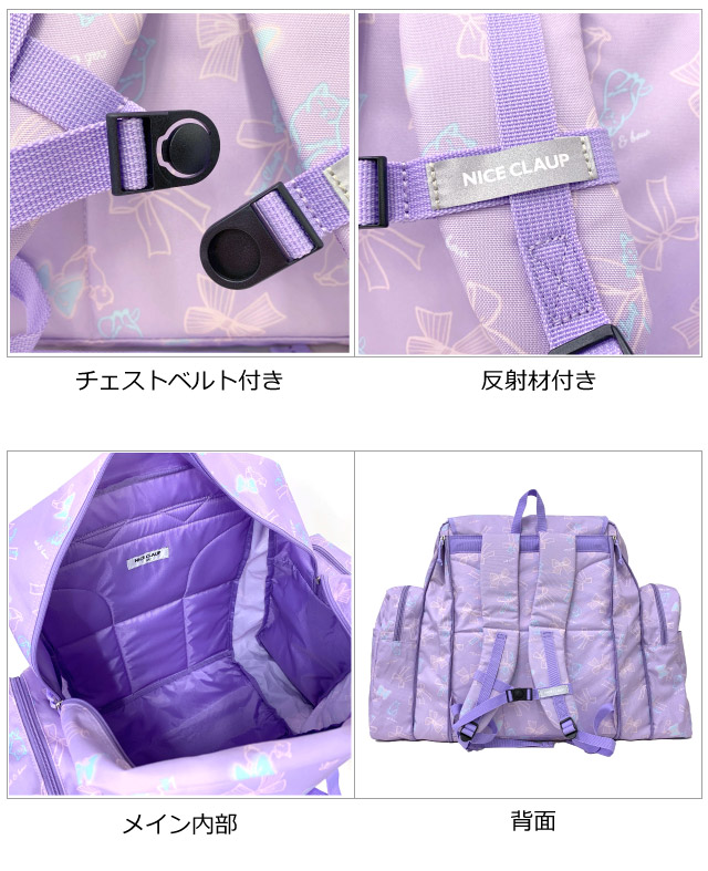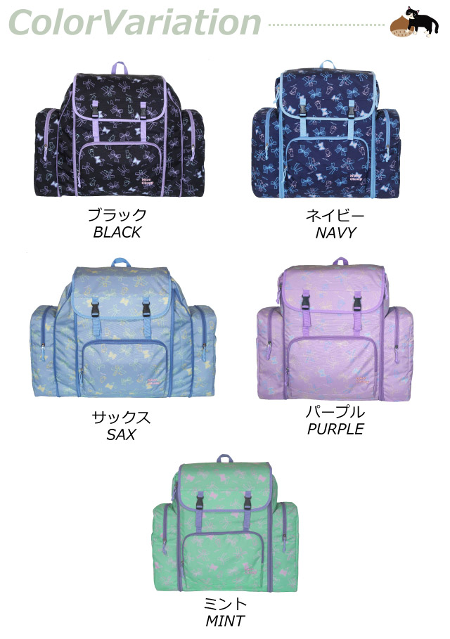 ■イメージ・その他:おしゃれ かわいい お洒落 おすすめ 人気 通販 可愛い ガール ブランド ねこ 猫 ネコ リボン りぼん 大型 大容量 ブラック ブルー ネイビー 黒色 水色 紫色 紺色 緑 グリーン ミント 拡張 反射材 リフレクター 林間学校リュック 林間学校バッグ