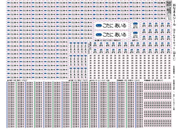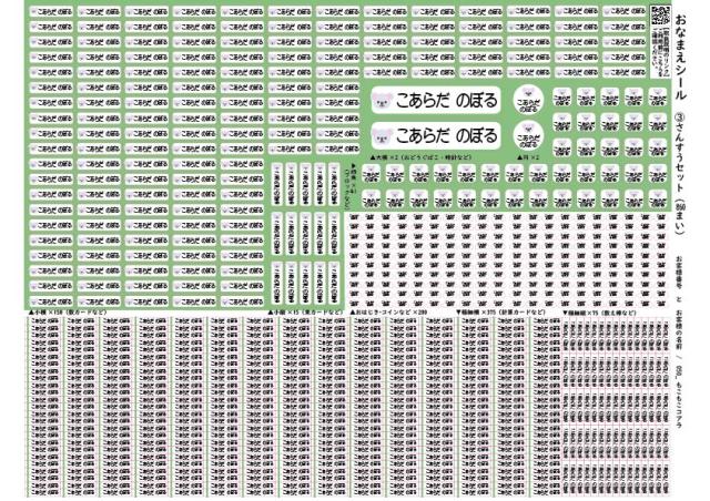 さんすうセットはA4シートに大小8種類のシールが全部で860枚入りです。