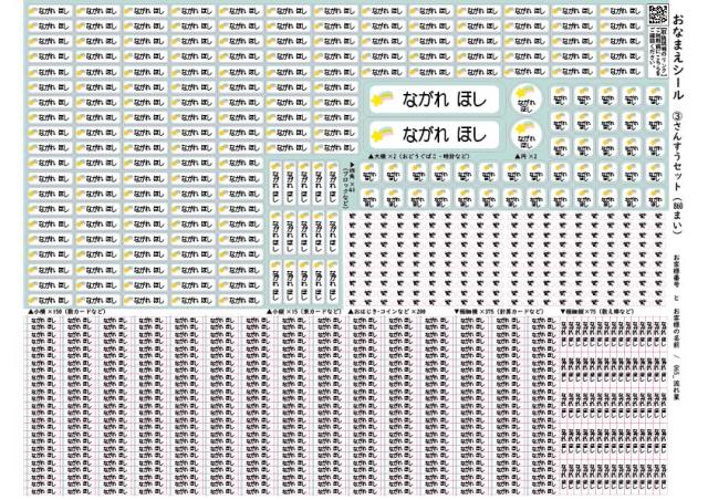 | 仕様 | 【シールサイズ】 大ヨコ/W60×H15mm(2枚) 小ヨコ/W20×H6mm(150枚) 小タテ/W6×H20mm(15枚) 極細ヨコ/W15×H3mm(375枚) 極細タテ/W3×H15mm(75枚) 円/W15×H15mm(2枚) 四角/W10×H10mm(41枚) おはじきコイン/W6×H3mm(200枚) ●印刷の種類/インクジェットプリント ●シート素材/塩ビ |