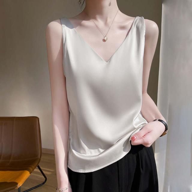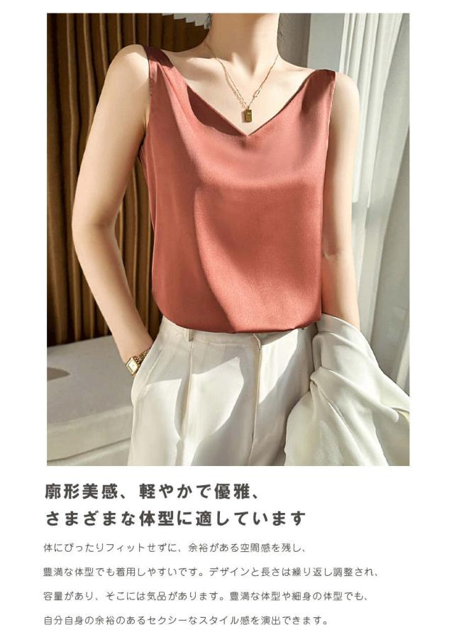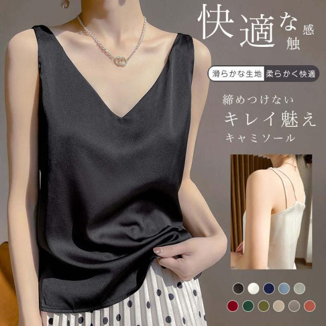キャミソール レディース 肌着 春 夏 秋 おしゃれ 無地 シンプル ベーシック 下着 光沢感 上品 着心地 透けない ロング ネグリジェ 部屋着 ナイトウェア エロ