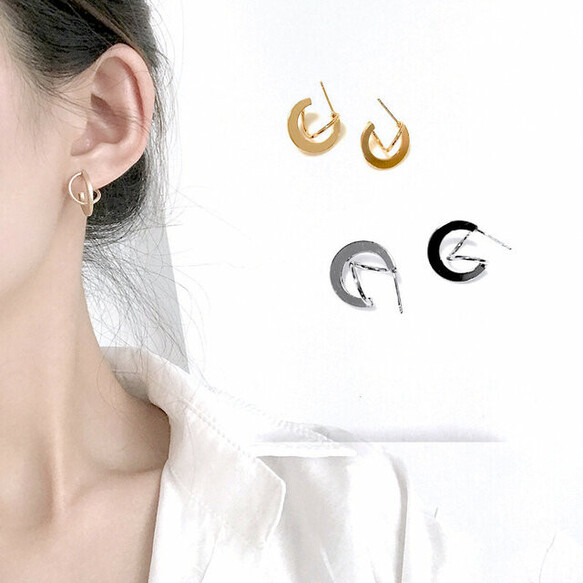 72 上品 2連 フープピアス シンプル 立体 シルバー ゴールド 金属アレルギー対応 ins風 おしゃれ