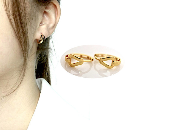 ★新品★06 上品ミニ フープピアス 24kゴールドメッキ シンプル ワンタッチピアス 中折りピアス 軟骨フープピアス