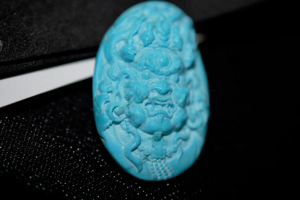 6186 一点物 本物天然トルコ石 ターコイズ ネックレス ペンダント 手彫り 鬼 大黒天 ビーズ メンズ