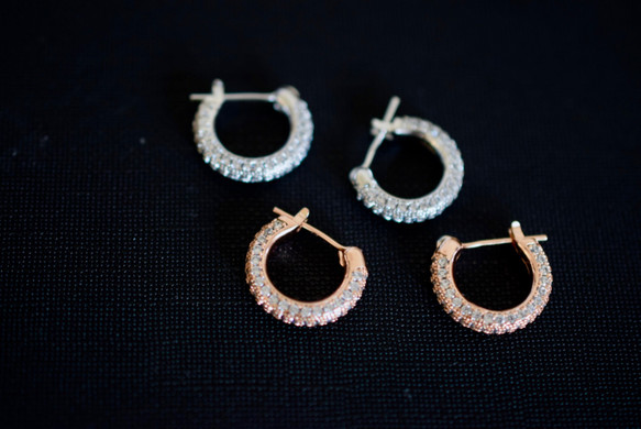152 高級感シンプル ミニ フープピアス 中折り ダイヤモンド 軟骨ピアス 軟骨フープピアス ピンクゴールド シルバ