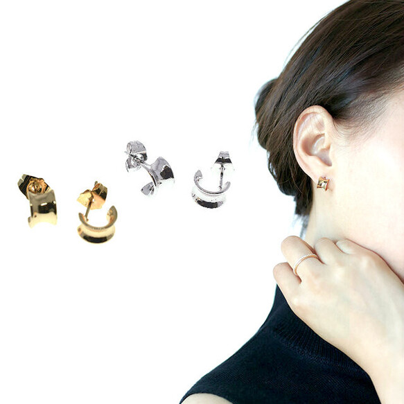 8 上品 ミニ フープピアス シンプル ワンタッチ ゴールド シルバー 軟骨 花 中折り 金属アレルギー対応