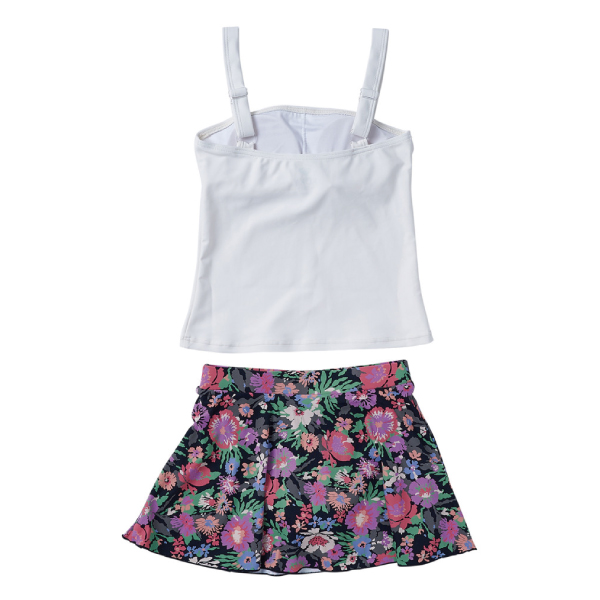 | | 大人の水着と同じ花柄を使用したタンキニ。大人っぽいスクエアネックが特徴で、ストラップが太めなのでずり落ちる心配が少なく安心して着用できます。ボトムはスカパンの仕様でウエストには紐を付けてサイズ調整を可能にしました。胸元にはROXYのロゴプリントをあしらいました。 |