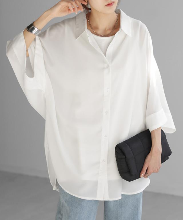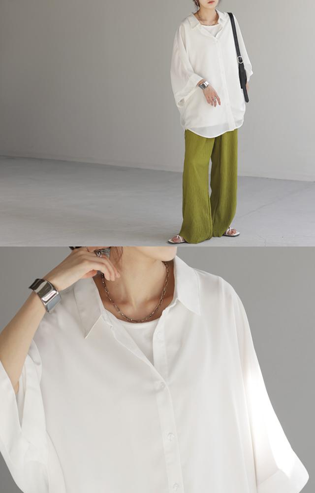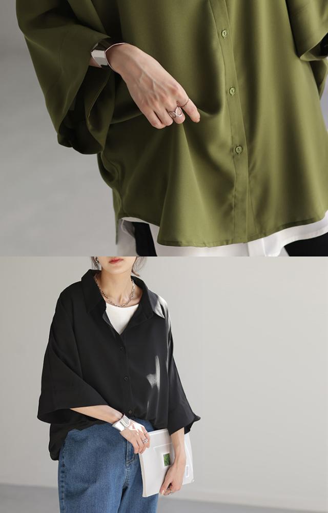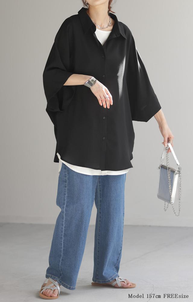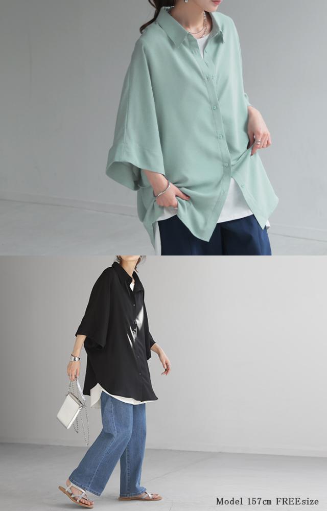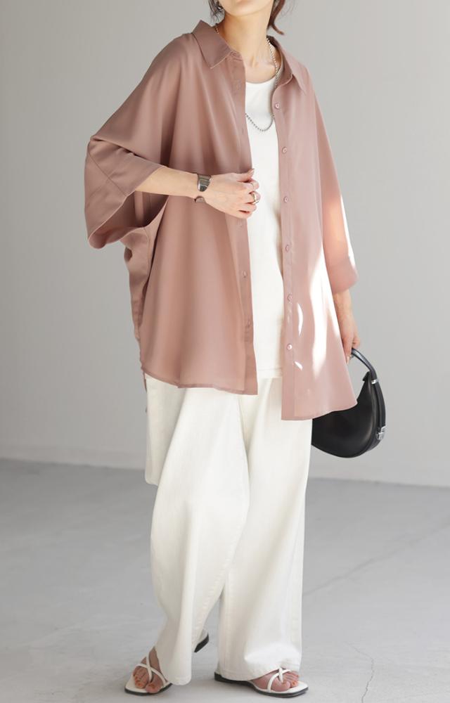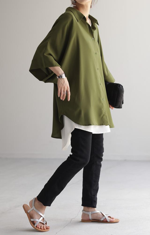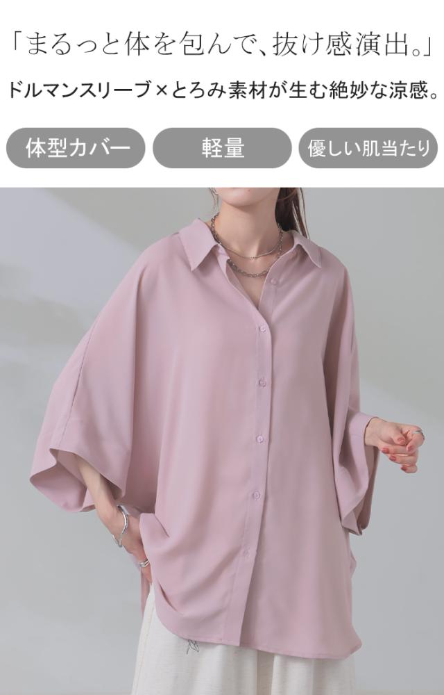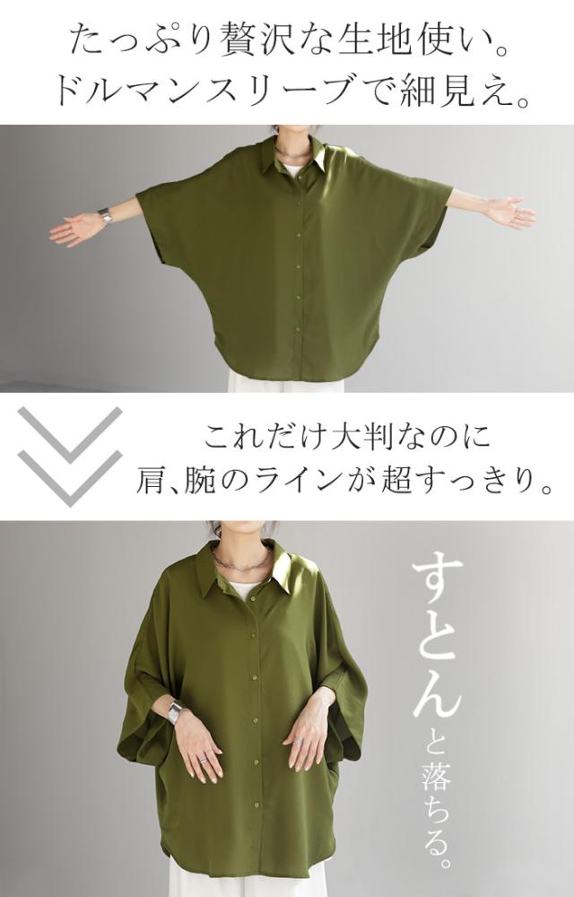 ゆったりとしたオーバーサイズのドルマンスリーブシャツです。