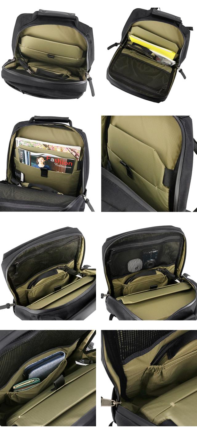 ■止水ファスナーを使用した後方ルームには、タブレットスリーブ付き。