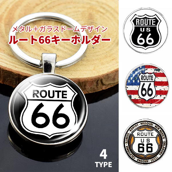 ルート66 ガラス ドーム型 キーホルダー 車 オートバイ キーリング ROUTE66 ヴィンテージ アメリカン ハーレー ユニセックス バイカー バイク USA メンズ レディース