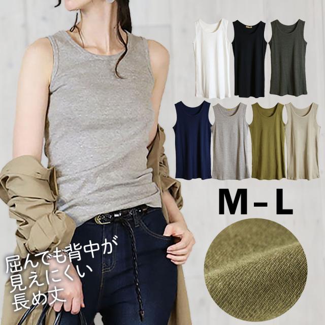 LARU 無地タンクトップ インナー ラウンドネック 長めの丈 綿素材 やわらかい レイヤード ホワイト ブラック グレー ネイビー カーキ 黒 白 M L コットン インナー ノースリーブ 肌着 下着 オールシーズンラルー ブランド