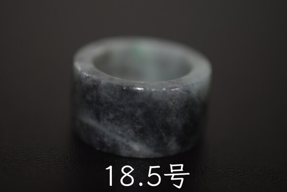 39-19 美品 18.5号 天然 翡翠 グレー リング 板指 広幅 指輪 硬玉 馬鞍くりぬき 誕生石
