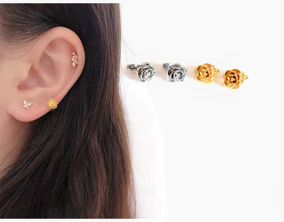★新品★7002 ミニピアス シンプルなピアス 花フープピアス 花ピアス 軟骨フープピアス ワンタッチ 中折り フープピ