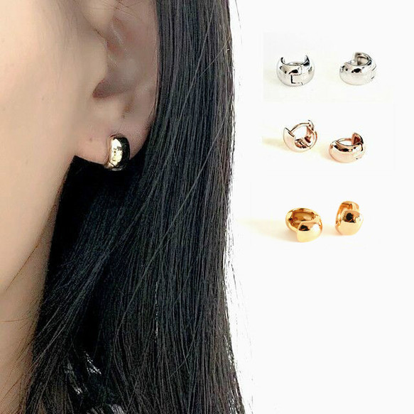 8105 シンプル ミニフープピアス 広幅 軟骨ピアス 軟骨フープピアス ピンクゴールド シルバー系 イェローゴールド