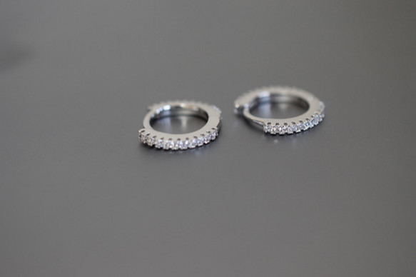 8089-3 シンプル ミニ フープピアス 細身 中折り ダイヤモンド 軟骨ピアス 軟骨フープピアス ピンクゴールド シ
