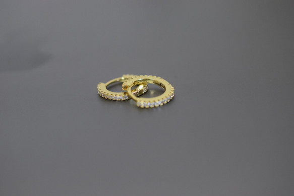 8089-1 シンプル ミニ フープピアス 細身 中折り ダイヤモンド 軟骨ピアス 軟骨フープピアス ピンクゴールド シ
