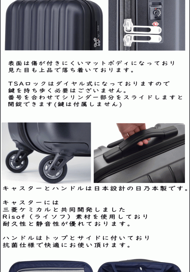 男女兼用 中学生 高校生 ポリカーボネート ハード 抗菌加工 静音キャスター マットボディ 軽い HINOMOTO 日乃本錠前