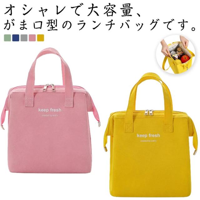 ランチバッグ がま口 クーラーバッグ お弁当袋 保冷バッグ 保冷 縦型 手提げ マチ付き 保温 ランチバッグ 大容量 お弁当バッグ 大人用 キッズ ピクニック 男女兼用 通勤 通学 お洒落 エコバッグ