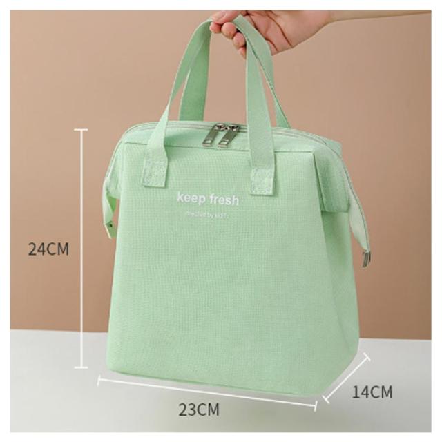 | オシャレで大容量、がま口型のランチバッグです。 取っ手付きでお弁当と一緒に水筒の飲み物なども持ち運べます。 裏地は断熱アルミ箔素材で保冷保温効果を兼ね備えて、オールシーズン使用可能です。 アルミ箔素材は撥水性に優れた生地を採用し、汚れがついても簡単に拭き取れます。 内部はランチ、飲み物、サンドイッチ、果物、野菜を簡単に入れるのに十分な広さです。 開き口は大きく、お弁当の出し入れがしやすくて、便利です。 大人にも子供にもお勧めのシンプルデザインのお弁当袋です。 | |