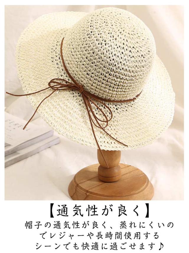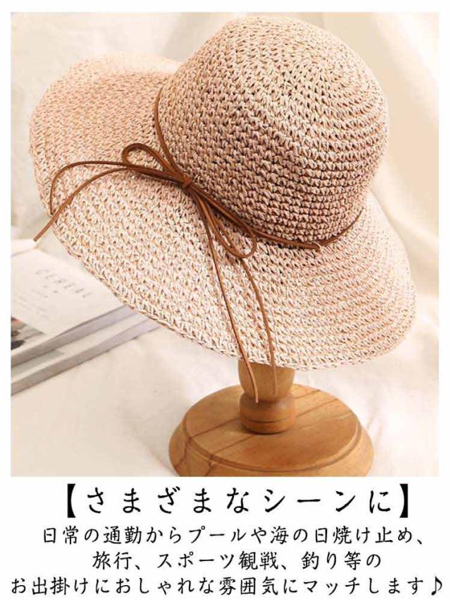 飛ばない 麦わら帽子 ストローハット つば広 折りたたみ UVカット 日焼け対策 レディース 可愛い おしゃれ 紫外線カット 54〜58cm レディース 小顔効果 運動会 旅行 春夏 母の日 プレゼント