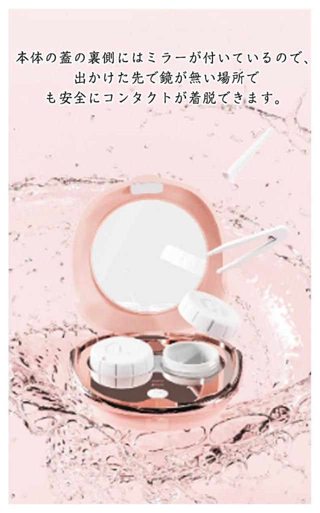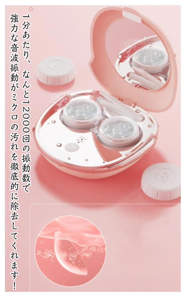 | 使い便利な超音波コンタクトレンズ洗浄機。 1分あたり、なんと12000回の振動数で強力な音波振動がミクロの汚れを徹底的に除去してくれます! 出かけた先でコンタクトに違和感を感じた時に、すぐに洗浄できます。 清潔に洗浄するために、ピンセットも付属しているので安心です。 本体の蓋の裏側にはミラーが付いているので、出かけた先で鏡が無い場所でも安全にコンタクトが着脱できます。 持ち運びに便利なコンパクトサイズ、重さも68g と超軽量! USBケーブルで簡単に充電できるので、などを使えば、出先での充電も可能。 約1時間の充電で、およそ60日間の連続使用が可能です。 | |