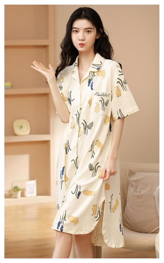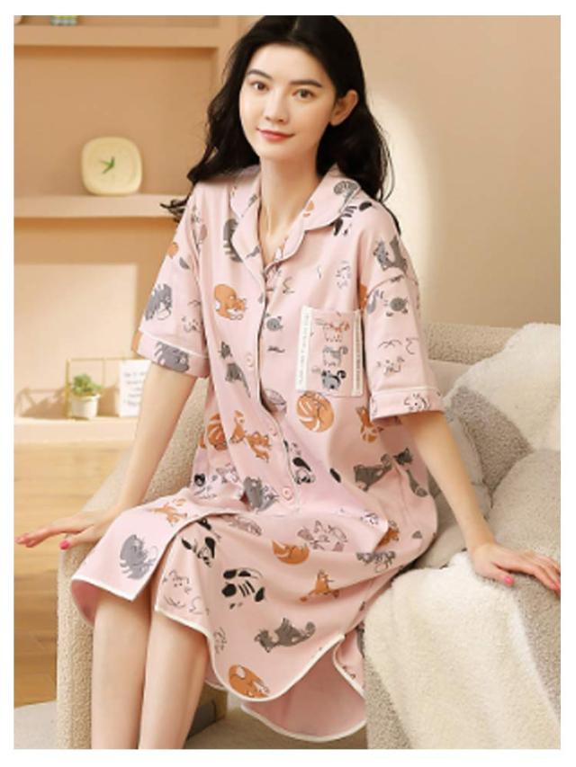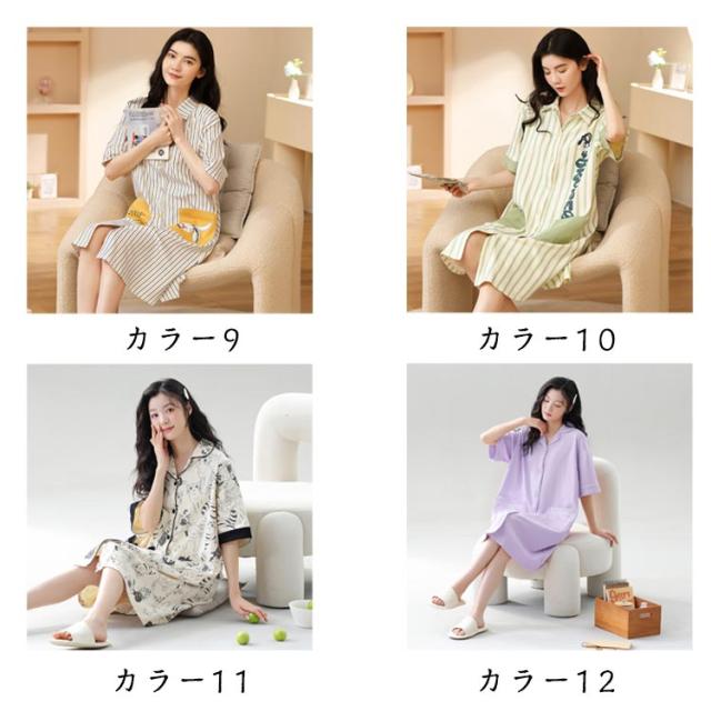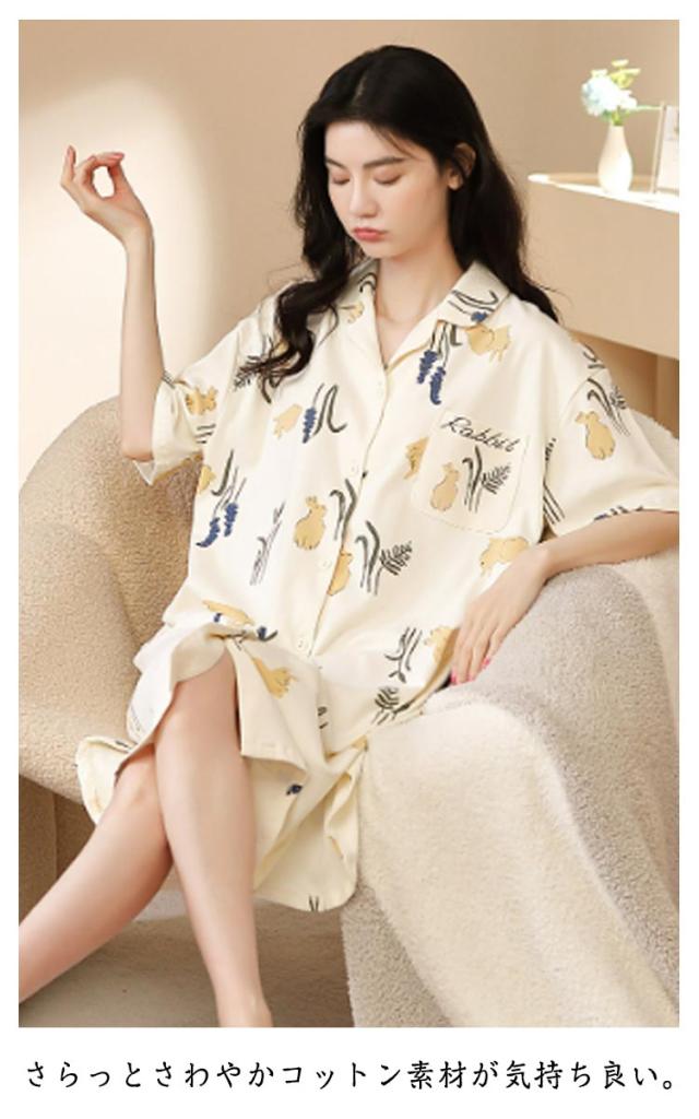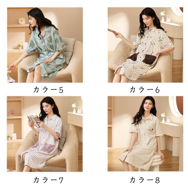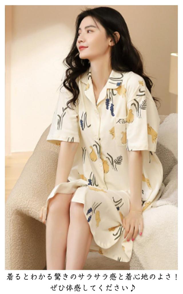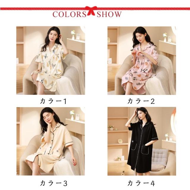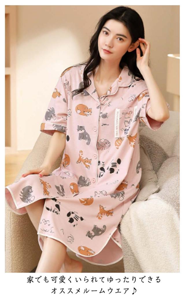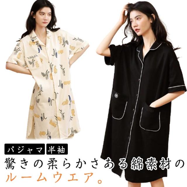 半袖 前開き ネグリジェ 夏 パジャマ パジャマ ワンピース パジャマ ルームウエア 綿 可愛い 半袖パジャマ 在宅着 リラックスウエア コットン 襟付き 大きサイズ ゆったり