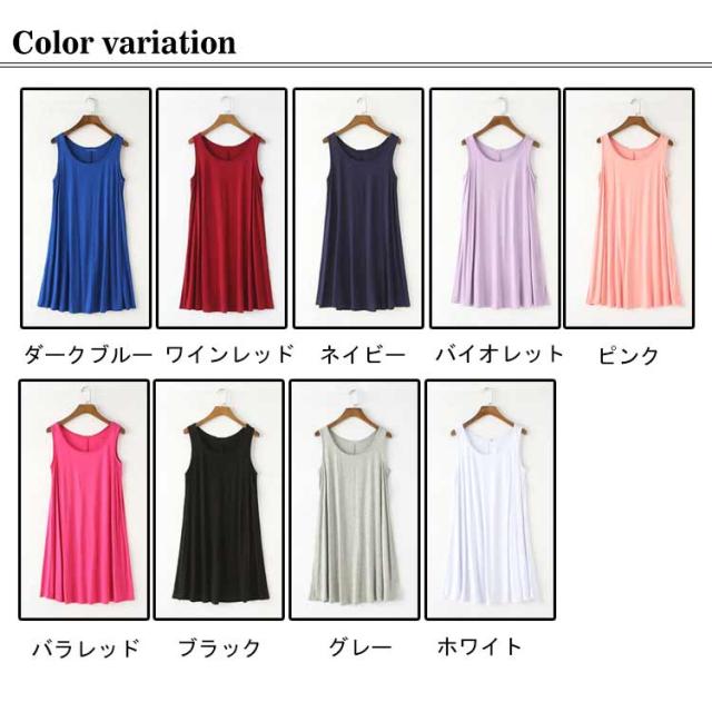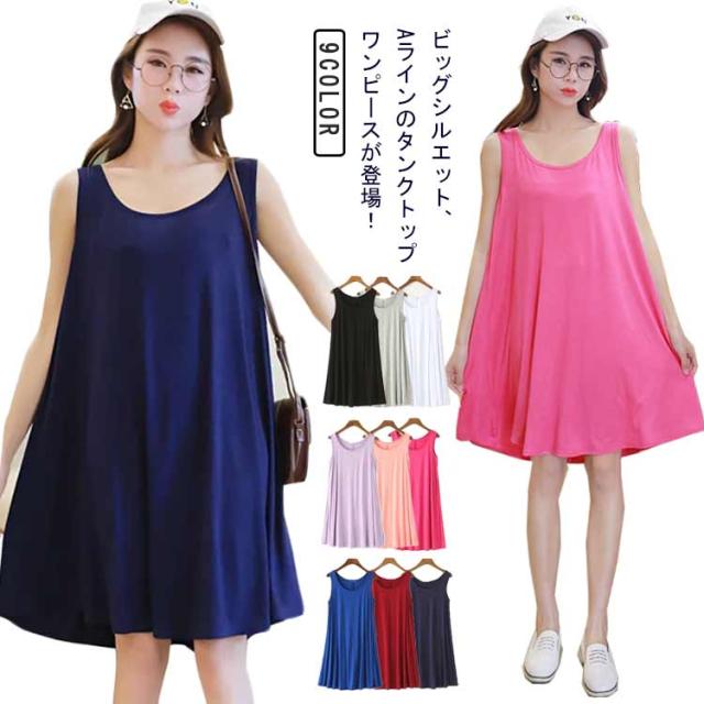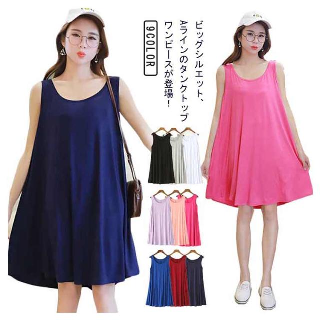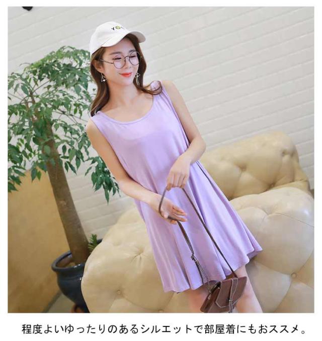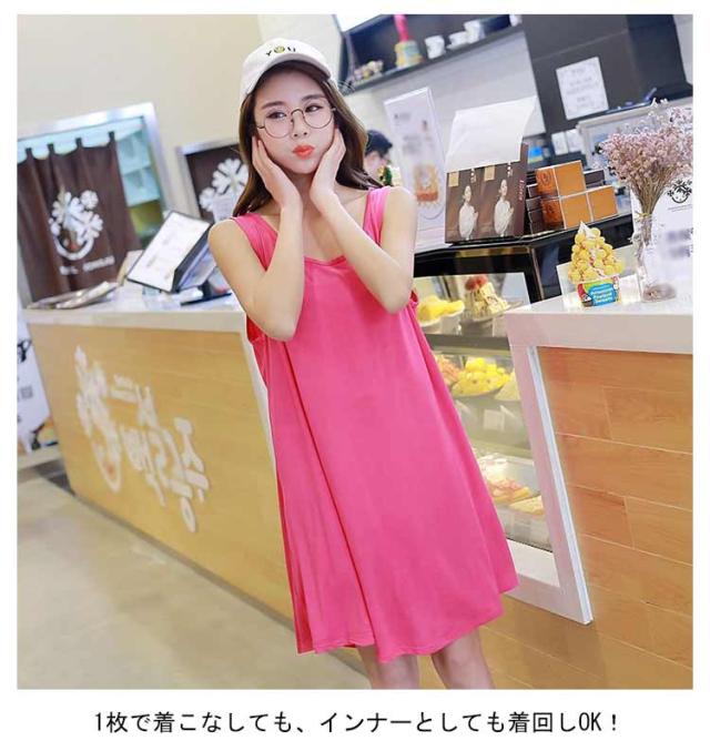 レイヤード トップス タンクトップ 無地 ワンピース 薄手 レディース 夏服 ロングタンクトップ ワンピース 大きいサイズ インナー ノースリーブ ラウンドネック 揺れる 涼しい シンプル 部屋着 パジャマ ふんわり 大人 女性