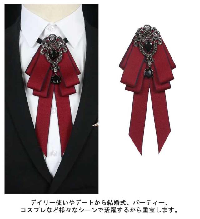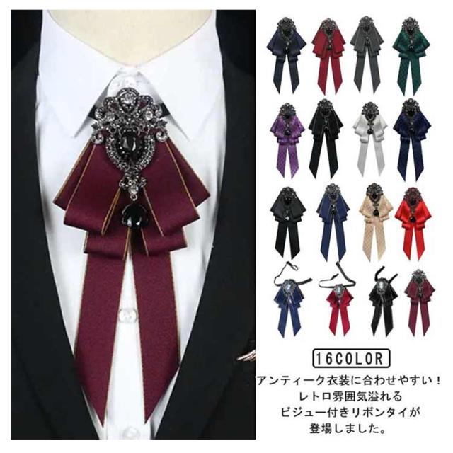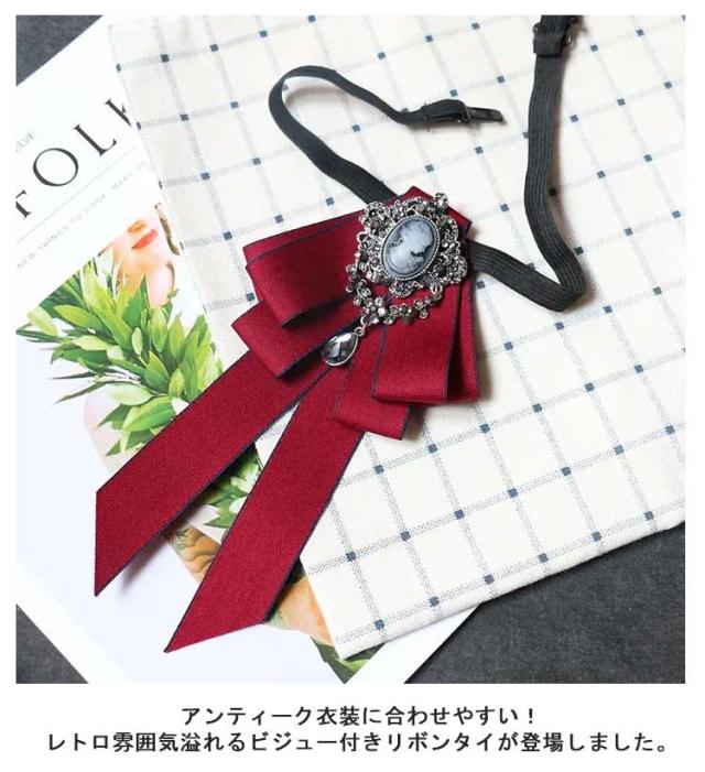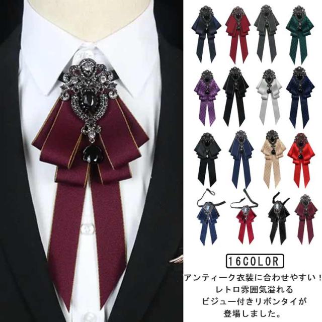 | アンティーク衣装に合わせやすい!レトロ雰囲気溢れるビジュー付きリボンタイが登場しました。 シャツやワンピース、ニットなど色々なアイテムと合わせやすく、メリハリのある上品スタイル完成。 デイリー使いやデートから結婚式、パーティー、コスプレなど様々なシーンで活躍するから重宝します。 男の子にも女の子にも似合うから、王子様系ファッションやお嬢様スタイルのアクセントにもピッタリ! | |