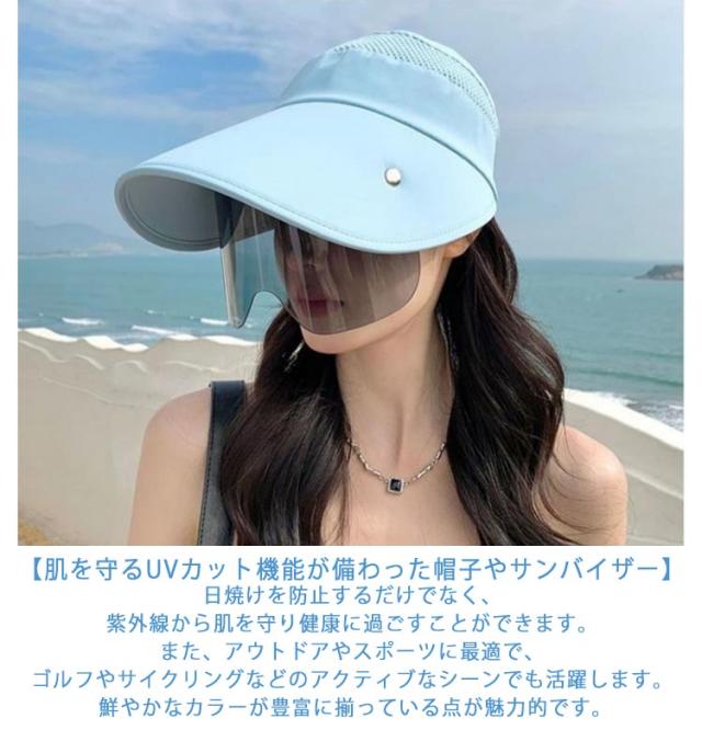 アウトドア 小顔効果すっぽり顔が隠れる 日よけ帽子 サングラスとサンバイザーの一体型 飛ばない キャップ uvカット 帽子 フェイスカバー 日焼け止め対策 自転車 つばひろ帽子 ひんやり ゴルフウエア ガーデニング 花粉症対策 バイク 自転車 遮光
