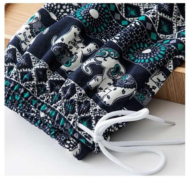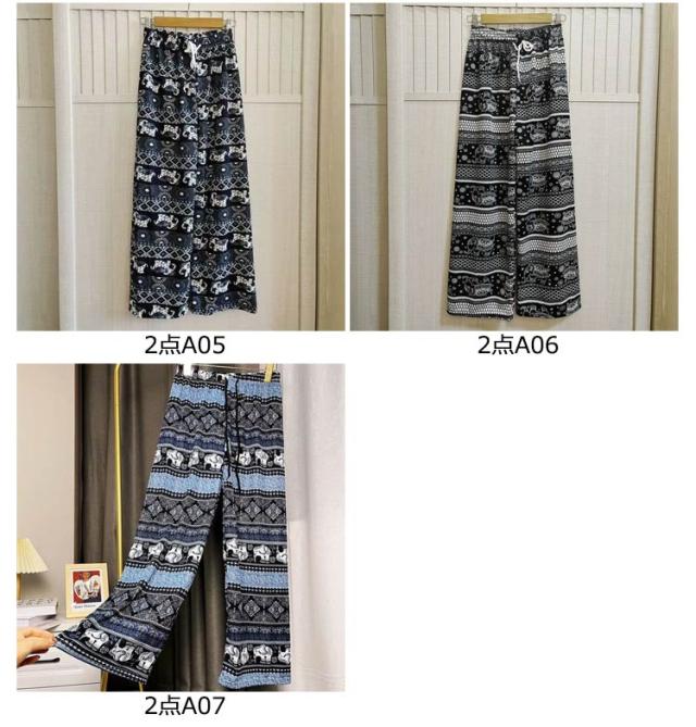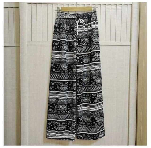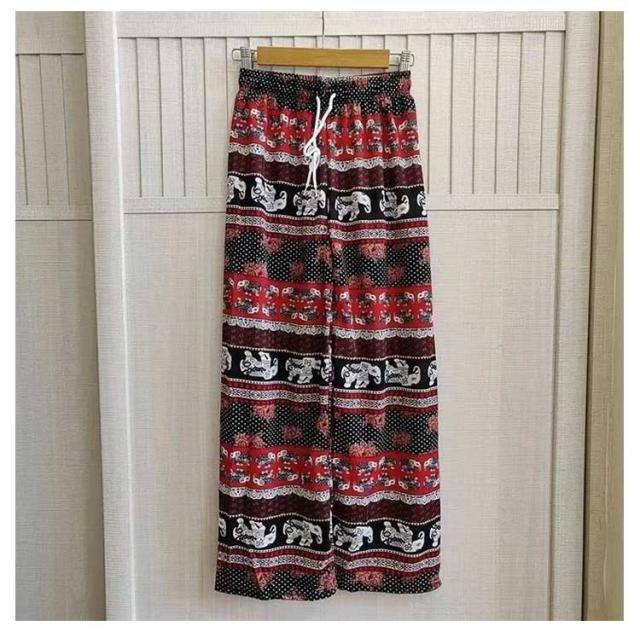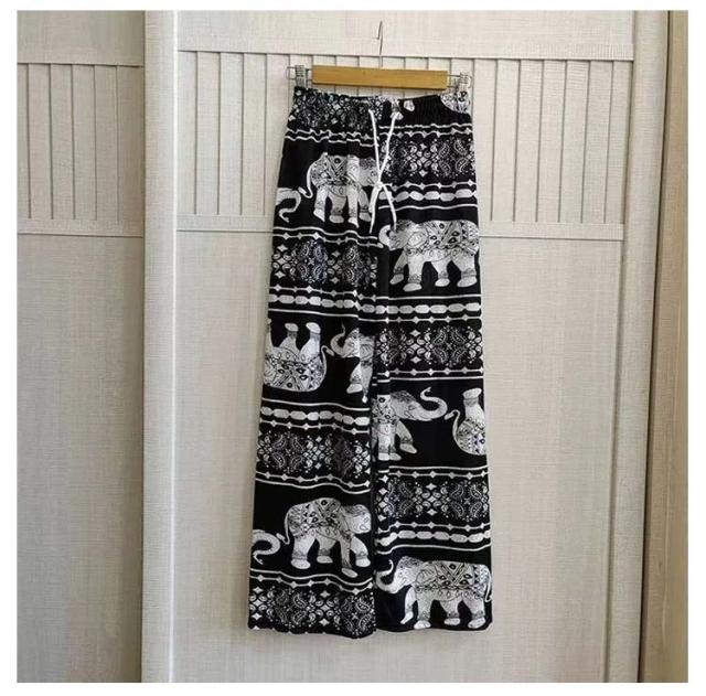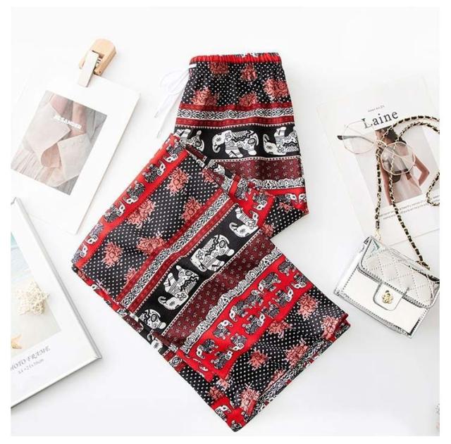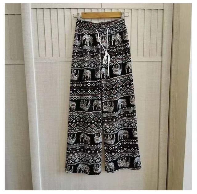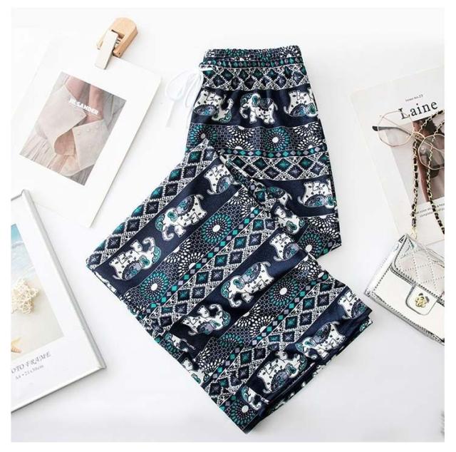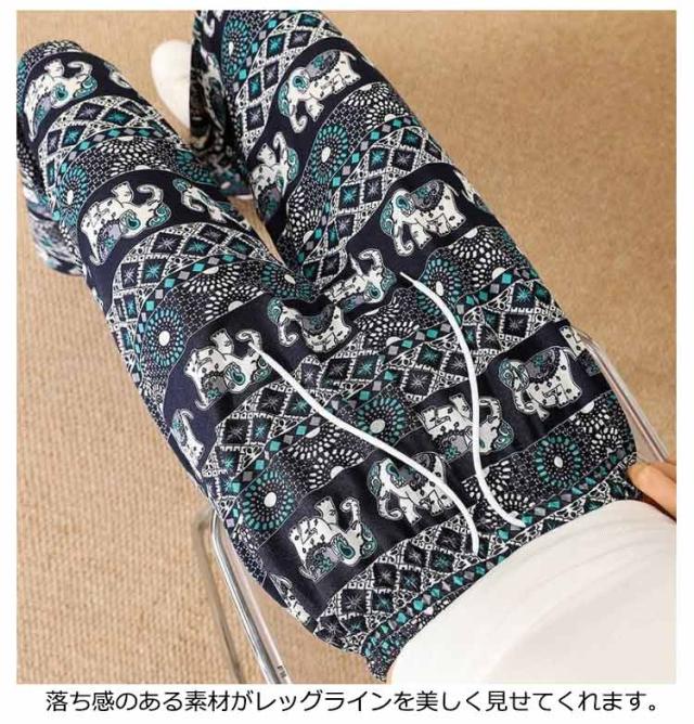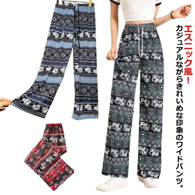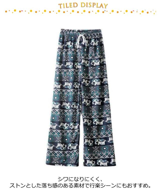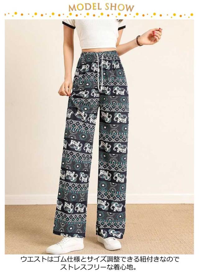 冷感 夏 パンツ ワイドパンツ 接触冷感 タイパンツ 象柄 2点セット レディース 涼感 ロングパンツ エスニック ルームウェア 部屋着 落ち感 薄手 通気性 体型カバー ハイウエスト カジュアル