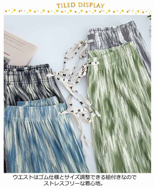 接触冷感 タイダイ染め レディース 2枚入り ワイドパンツ パンツ 冷感パンツ カジュアルパンツ イージーパンツ ロングパンツ 薄手 おしゃれ ウエストゴム 着痩せ 柄パンツ 体型カバー サマーパンツ タイダイ染め ストレスフリー