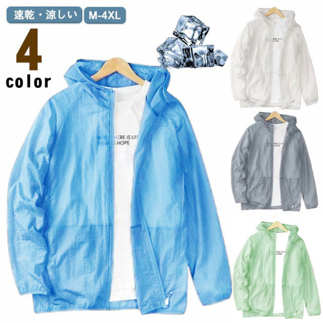 パーカー トップス 接触冷感 メンズ アウター 速乾 UVカット 涼しい ジャケット 薄手 フード付き 長袖 ひんやり 冷房対策 ラッシュガード UVカット 通気性 夏用 アウトドア 羽織 ライトアウター