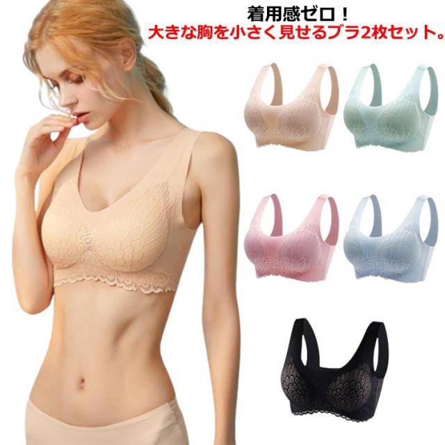 ブラ レディース インナー 胸を小さく見せるブラ ウレタン 2枚 スッキリ ナイトブラ ノンワイヤーブラ シームレス 小さく見せるブラジャー 大きな胸を小さく見せる 下着 ワイヤレス 脇肉 背中 胸が小さく見える 脇高 谷間メイク 着?せブラ ブラ 無縫製