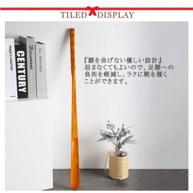 | 『腰を曲げない優しい設計』 屈まなくてもよいので、足腰への負担を軽減し、ラクに靴を履くことができます。 『持ちやすい質感』 曲線が美しく、手に馴染む太さなので、実用性に優れています。 『選べるブナ材・シマルトロエ材』 『様々なシーンになじむシンプルデザイン』 木の温かみがあり、空間の邪魔をしないデザイン。 | |