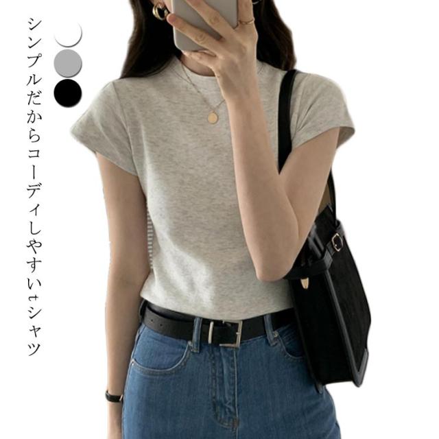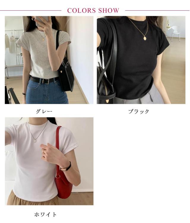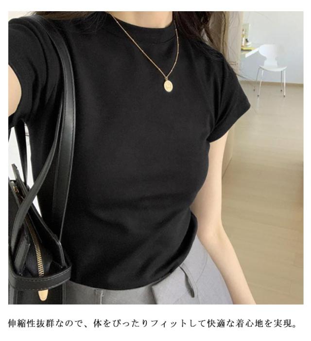 トップス 無地 レディース ハイネック 半袖 ハイネック フレンチスリーブ 春 夏 秋 汗染み 丸首 日焼け対策 カットソー タートルネック 薄手 フィット Tシャツ スリム 20代 30代 40代 OL きれいめ